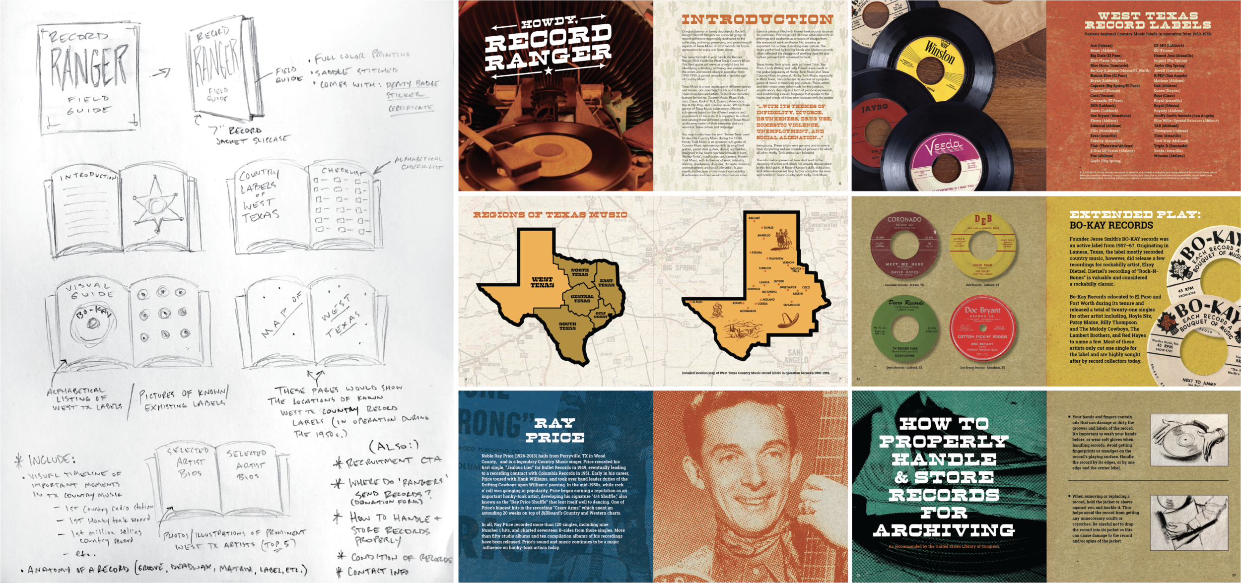 Spreads and concept sketches for the “Record Ranger Field Guide: West Texas Edition.”