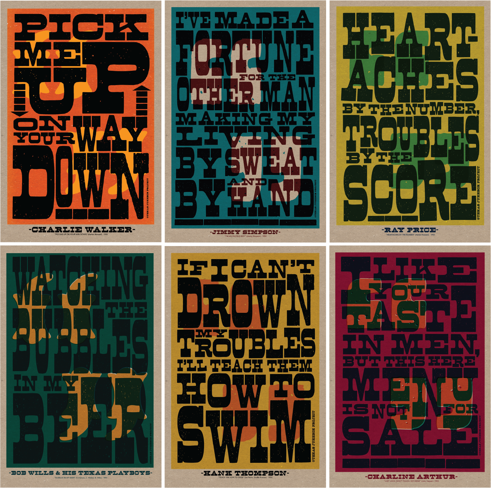 Concept poster design featuring lyrics from popular Texas honky-tonk songs.